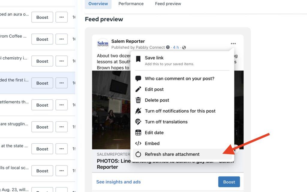 How to adjust the story image on Facebook when the wrong image is showing First, clear the site cache. Find the post that has the incorrect image associated with it. Screenshot Select Refresh share attachment. Screenshot Updated on November 22, 2025 Was this article helpful? Yes No Get more helpCan't find the answer you're looking for? Get in touch.Contact support