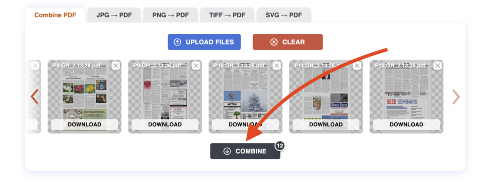 2) Drag and drop all PDFs at once into combinepdf.com.