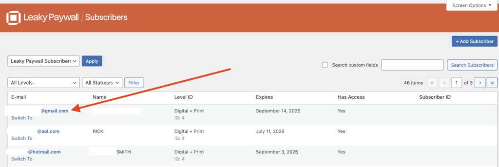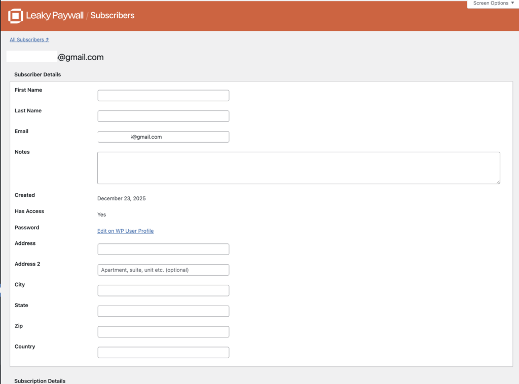 To manually update a subscriber to Leaky Paywall, go to Leaky Paywall -> Subscribers.