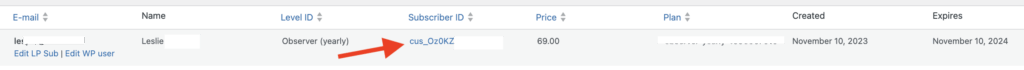 1) Find the current paid email in Leaky Paywall -> Subscribers
