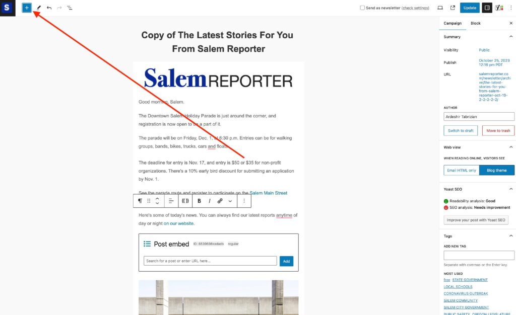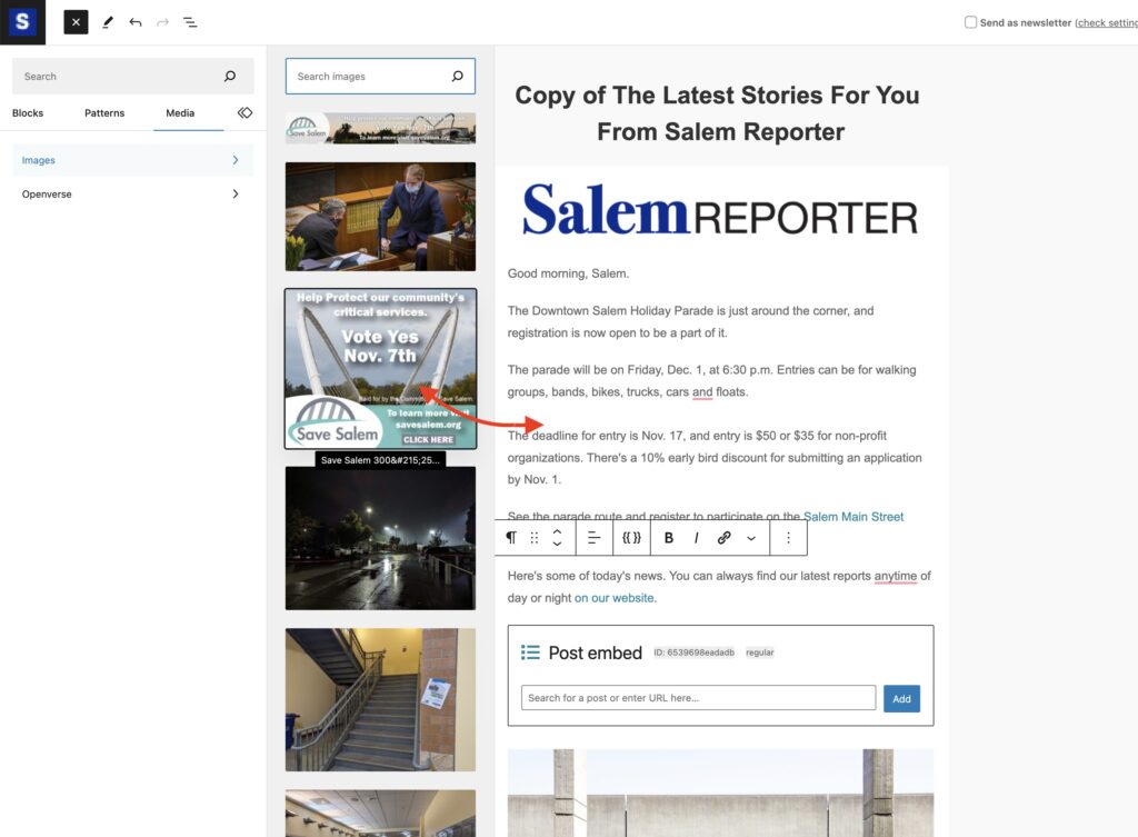 Search for the ad in the media library and drag and drop it into the preferred location.