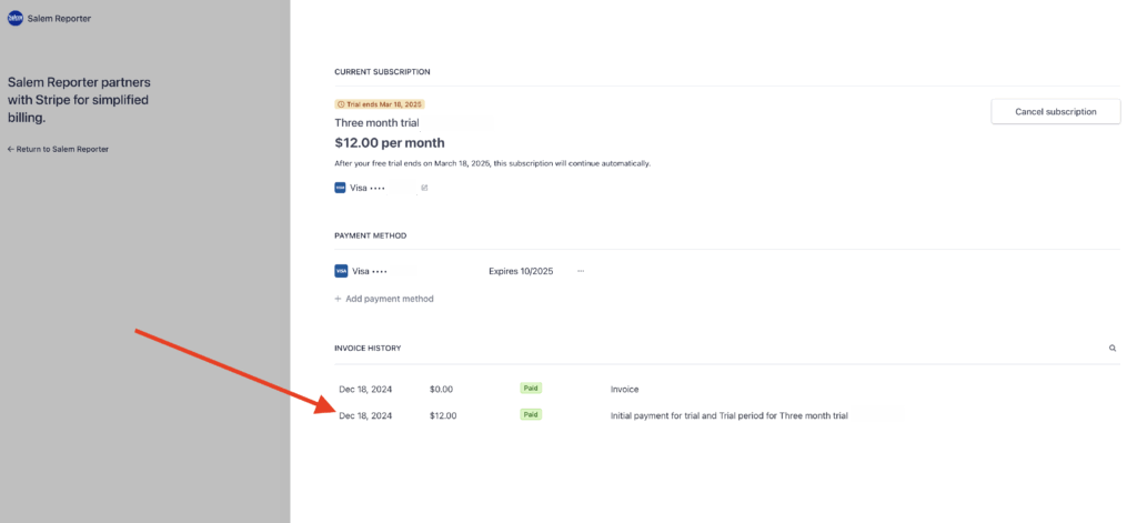 Subscribers can download invoices and receipts directly from their My Account dashboard.
