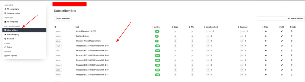 Select “View All List” then select the list you want to add segments