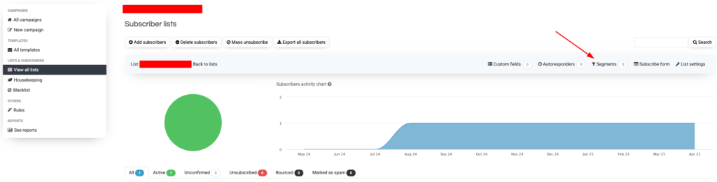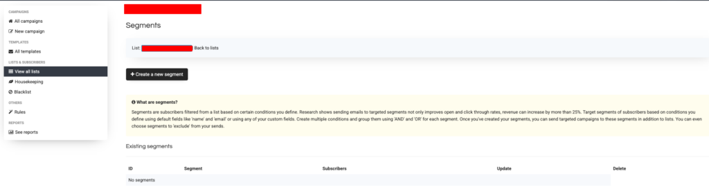 Now, back to the lists, and click “Segments”