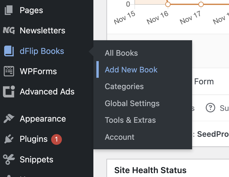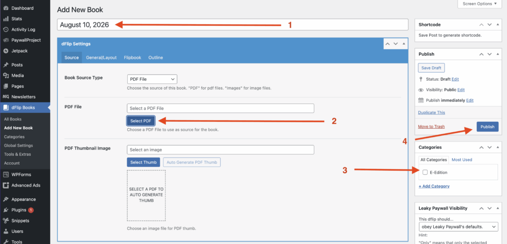 Go to dFlip Books -> Add New Book