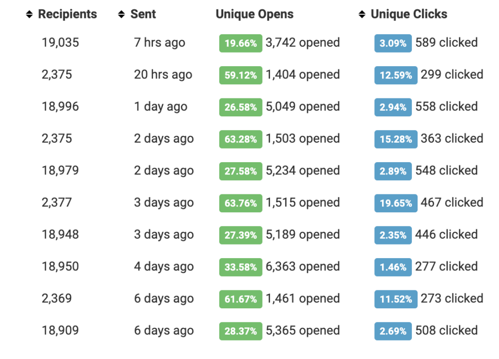‘Unique Clicks’ means how many unique people clicked a link inside the newsletter.