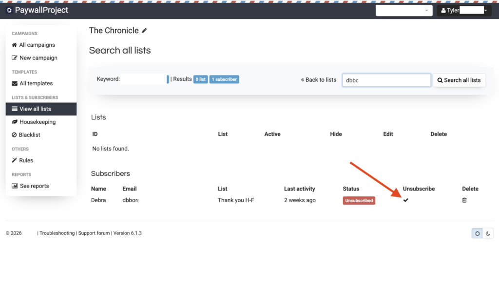 Select View all lists and search for the subscriber that’s not receiving the email.